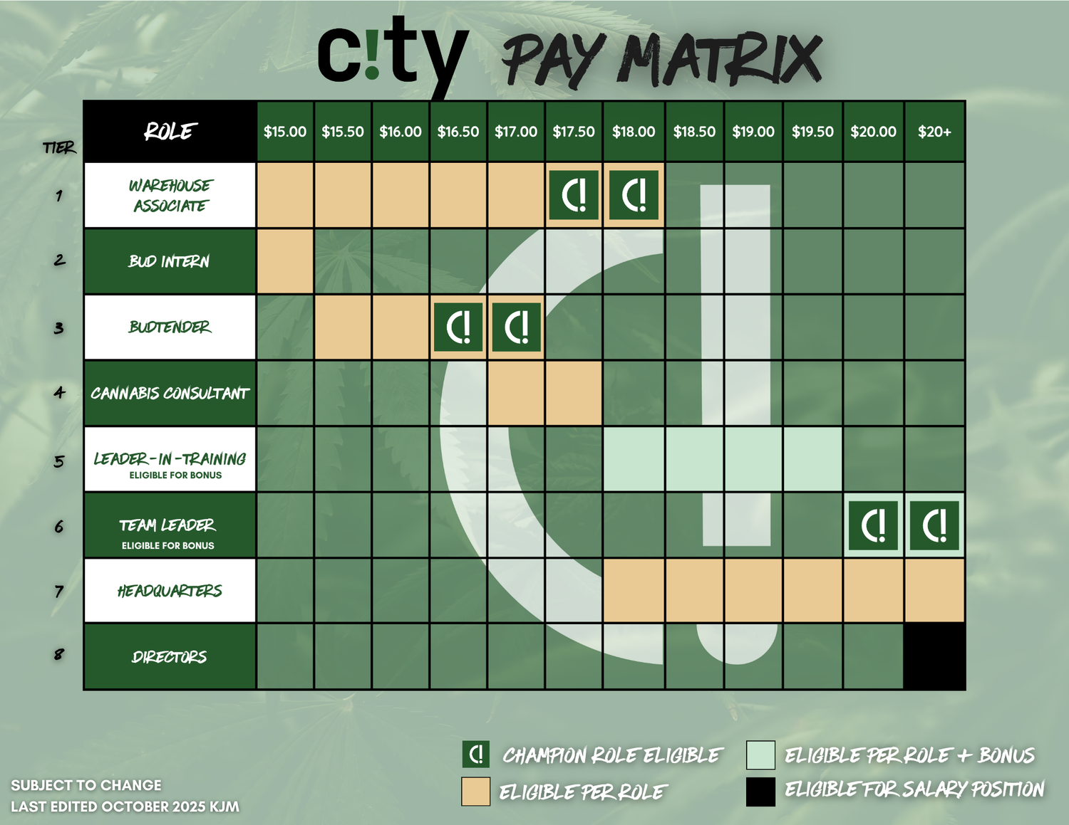 At City Distributions, transparency is at the core of our leadership and workforce development. We foster open communication, including sharing pay rates, to ensure fairness and competitive wages for all team members. With clear career paths, robust training, and ongoing development, we empower our team to build successful careers in cannabis, focusing on their strengths for personal and professional growth. Join us and grow with a company that values your success!